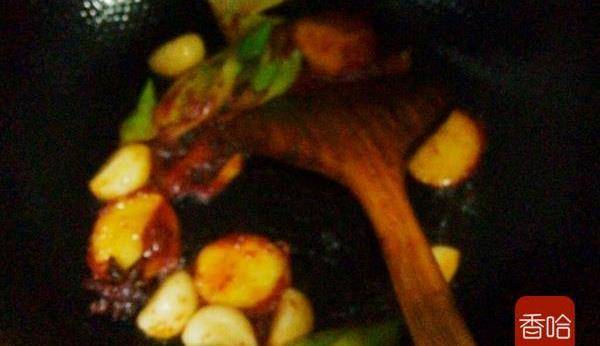 5.油鍋爆香蔥薑蒜大料,放番茄醬煸炒。