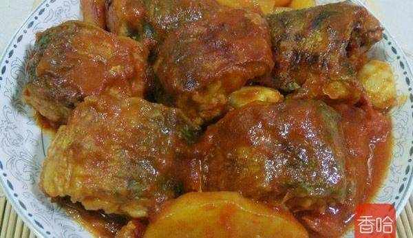鮁魚2~3條、土豆1個、西紅柿2個、番茄醬2-3勺、海鮮醬油適量、油,鹽,料酒適量、水1碗、蔥薑蒜適量、大料2個、白糖3勺