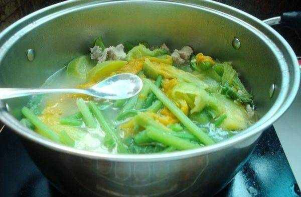 9、放入瓜藤和瓜花繼續煮2分鐘。