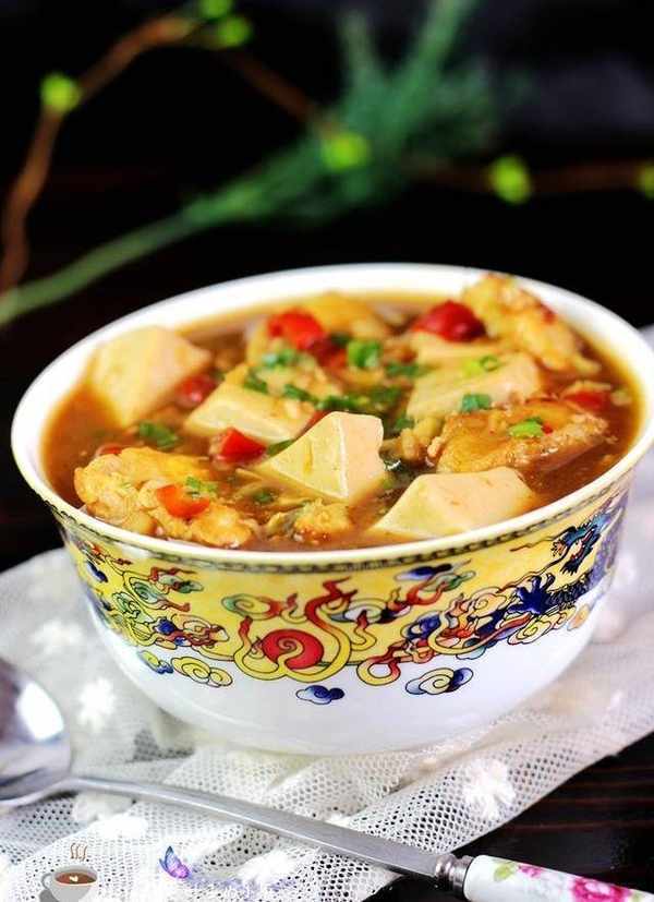 11、煮到湯變濃稠,加入少許生抽、適量水淀粉,滴入幾滴香油和花椒油翻勻。花椒油能進一步去腥提香,但是很多朋友接受不瞭花椒的味道,這個根據個人口味來添加。