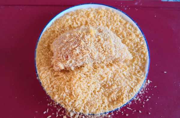 4. 接著裹上一層面包糖,