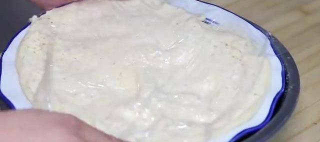 準備一個盤子倒入適量的開水,上面再放一個大碗,搭好的雞蛋倒進去,用筷子攪兩下,再加入兩碗的面粉,這倒入50毫升的酵母水和成面團。活出這種偏熱的面條就可以瞭。再蓋上保鮮膜,要把整個盤子都給他包起來,醒一個小時左右,一個小時過去瞭。這種方法又快速簡單把它拿出來排一下裡面的氣,把面揉光滑瞭,再用刀切成兩半,再用搟面張給它搟薄。