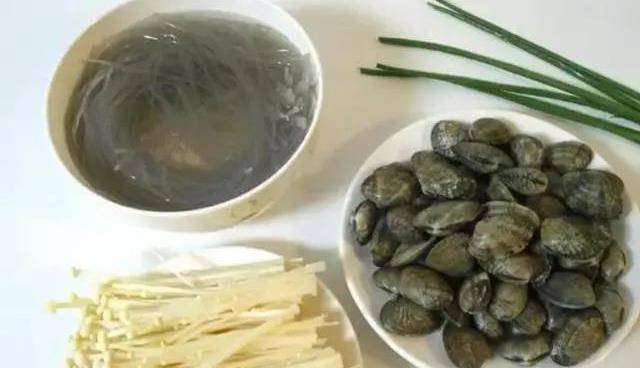 1,紅薯粉絲提前用溫水泡軟,金針菇切掉根部,清洗幹凈。買回來的花甲提前用淡鹽水浸泡3~4小時,讓它們吐出泥沙。