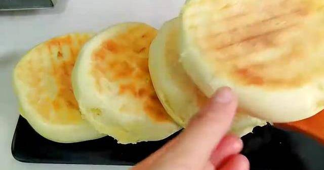 電餅鐺預熱不需要刷油。蓋上蓋子,兩分鐘。煎制兩面金黃,用鏟子輕輕按壓,能快速回彈,出鍋。白菜肉餡團成一個球,電餅鐺預熱刷油。在中間掏一個小窩窩。加上蓋子,悶5分鐘。找一把小刀,把我那餅子在中間給它切一下。加上我們煎好的白菜肉。加這個肉塊就可以。
