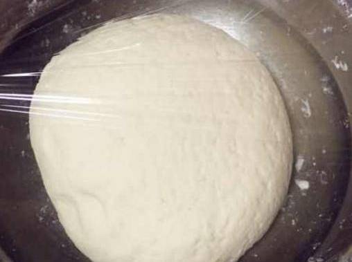 500克面粉,倒進盆裡,用270克涼水和面,邊倒邊攪,先攪成棉絮狀,再用手揉成光滑的面團,封上保鮮膜,醒30分鐘。