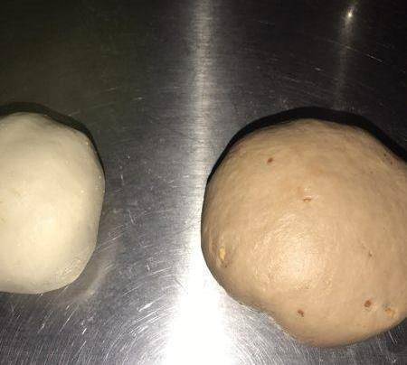取出來把兩個面團分別再揉一分鐘左右,滾圓蓋保鮮膜松弛10分鐘。