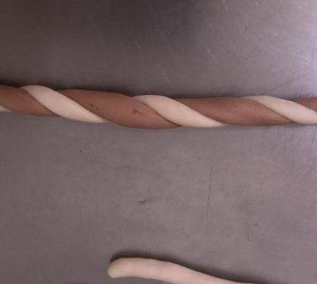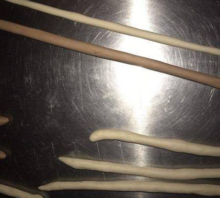 將兩個面團分別搓成長條。