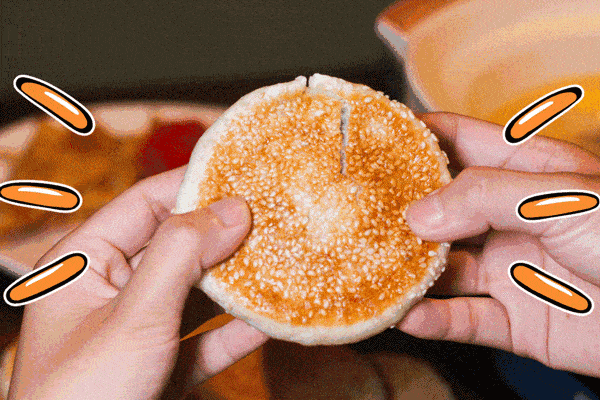 表面一層是酥酥的糖殼兒,油亮油亮的,咬開之後能見到蜂窩紋理。吃起來麥芽糖的味道甜而不膩,還帶有芝麻清香,融合著油脂的香氣,口味與氣味都有分外分明的層次感。