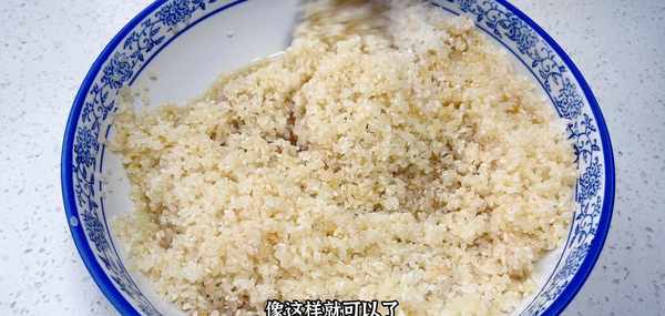 碗裡倒入一勺的醬油,一勺蠔油, 一勺食用油,再加入適量的清水,把它們稀釋一下,用勺子充分地攪拌均勻之後,倒入洗好的大米裡面。再用勺子攪拌一下,像這樣就可以瞭,把它們泡上兩分鐘。