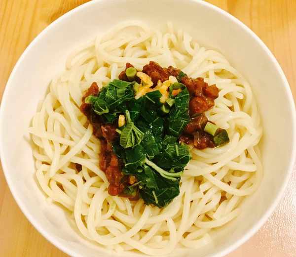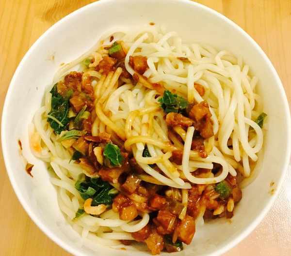 撈出面條過涼水,控幹水分盛入碗中舀一勺炸醬,加點海米、香椿水攪拌均勻開始享用吧!加海米水和香椿水不至於吃面的時候太幹。