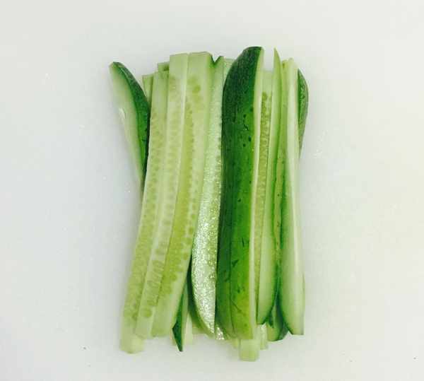 放入黃瓜丁改中火炒至斷生,關火撒少許雞精調味即可