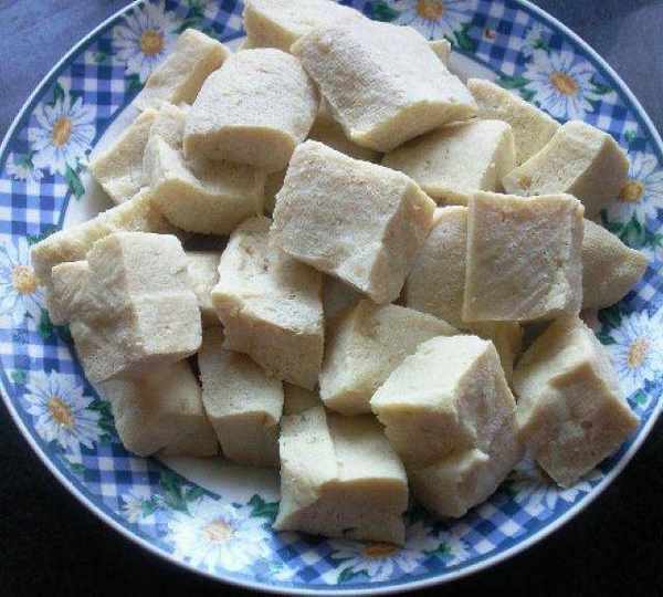 第3步、將凍豆腐化凍,擠出水分。