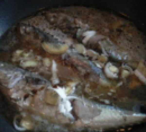 第4步、鍋裡放入適量底油,熱溫熱就放入魚煎制。