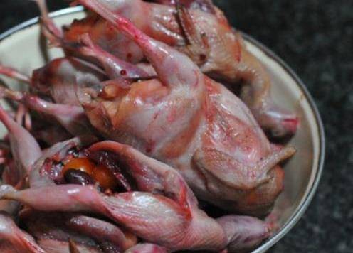 第一步,把買回來的鵪鶉洗幹凈,把鵪鶉的肚子破開,內臟也要洗幹凈,其實鵪鶉的內臟是可以吃的,洗幹凈就好瞭,但要是怕麻煩的話也可以把它丟掉,就不用處理瞭。