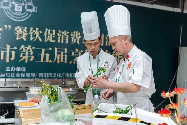 南陽網訊 (記者王鵬)仲景藥膳宴,全魚宴,養生宴……4月27日,2023“豫鑒美”食南陽市第五屆烹飪技能大賽在賒店酒鄉小鎮拉開帷幕。現場創意新穎的美食令人眼花繚亂、垂涎欲滴,為全市人民奉獻瞭一場美食文化的饕餮盛宴。