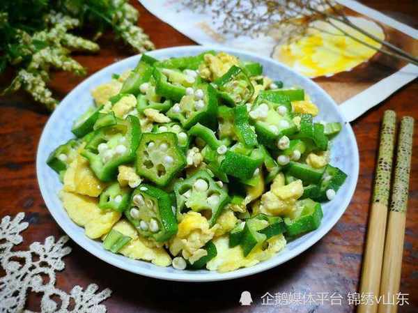 食材:秋葵、雞蛋、小米辣、食鹽、生抽、蠔油、雞精、食鹽、白砂糖