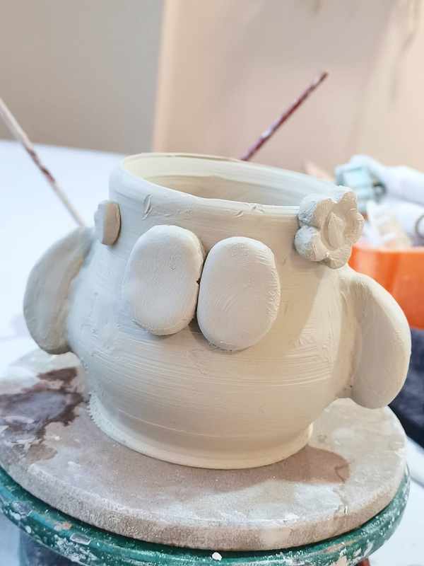 ?將所有捏好的零部件蘸點泥漿貼到杯身上就好啦