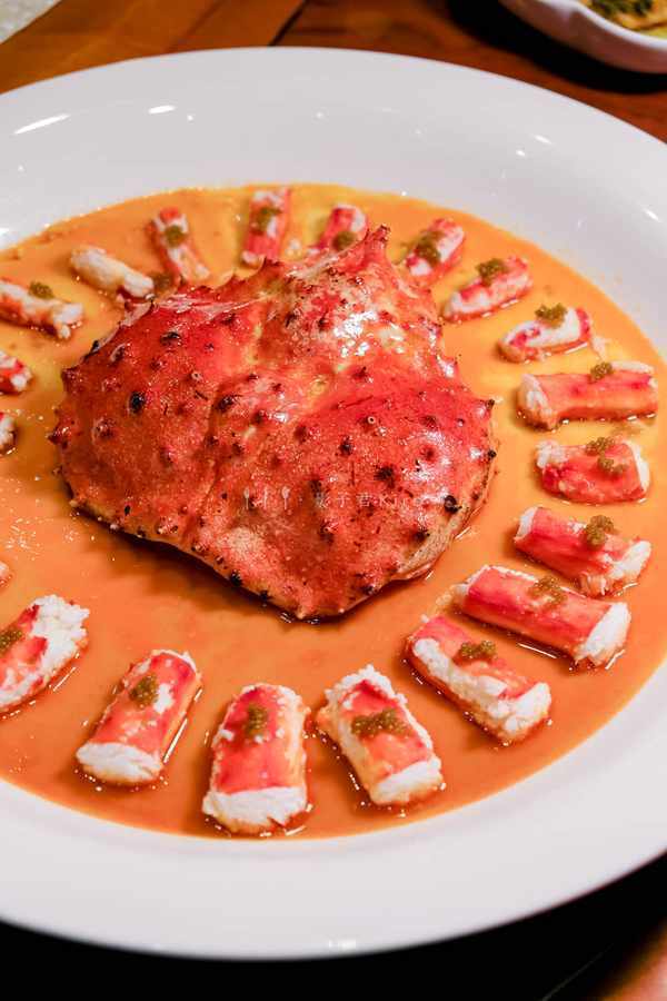 有蟶王,自然也少不瞭老婆最愛吃的帝王蟹瞭!花雕芙蓉蒸帝王蟹腳,已經提前幫我們去殼,最適合我老婆這種懶得動手的人瞭,帝王蟹的肉鮮嫩好吃,搭配的芙蓉蒸蛋也咸香四溢,兒女也是特別的喜歡,吃瞭好幾碗,算是老少皆宜的一道美食。