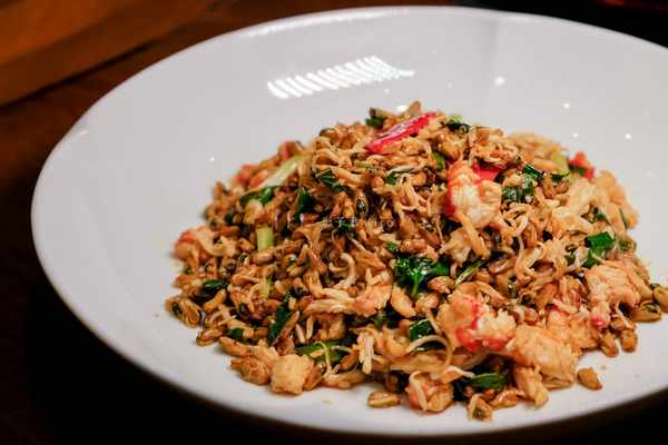 秋葵山椒撈花枝卷軟嫩鮮香,搭配秋葵的爽嫩,還融入瞭菇的香氣,滋味十足。更有好吃耐吃越吃越香的主食,肉松海苔臘味炒飯,將海苔碎徹底融入米飯之中,將米飯炒至粒粒分明,將海苔的香氣融入米飯的香氣之中,加入肉松,好看好吃,越嚼越好吃!飯後再來一碗松茸菌菇燉閩南番鴨湯,滋補清甜,好喝解渴解膩,足足喝瞭三大碗!