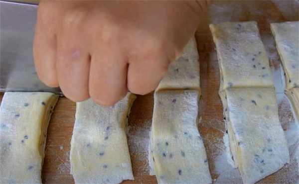 3.用刀切成長條,橫著再切一刀。