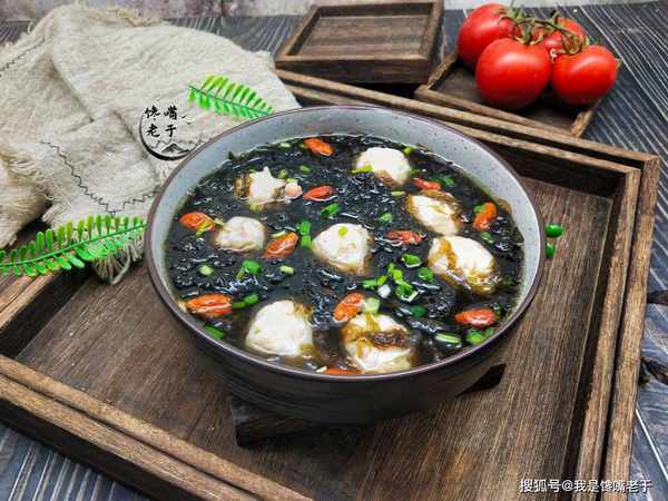 食材:鮮蝦、紫菜、枸杞、蔥、薑、料酒、胡椒粉、鹽、香油