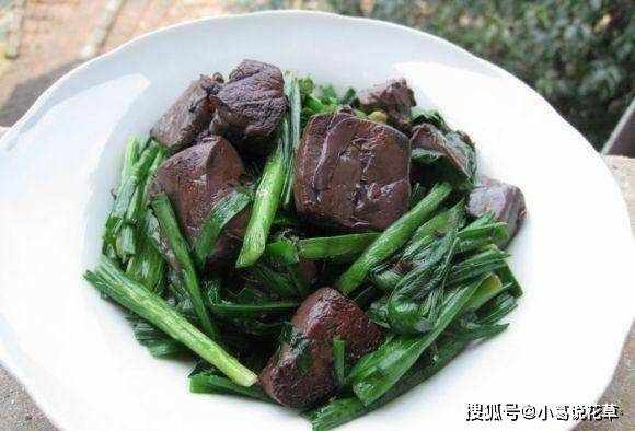 鍋內加入適量食用油,油熱後放入薑蒜爆香。然後加入韭菜莖炒。待炒飯變軟略變色後,加入韭菜葉和豬血炒香。炒的過程中可以加一點水,這樣炒的時候不會太幹,也可以加快蔬菜的熟度。炸好後我們看到韭菜葉快熟瞭,加少許鹽和雞精,翻炒一下,就可以出鍋裝盤啦!