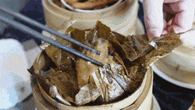 粘雞在廣州也是一道很受歡迎的早餐。粘雞跟粽子很像,不過粘雞比較好的口味之一就是粘雞裡面有雞肉,所以味道會更香。大多數沒吃過糯米的人,是分不清糯米和糯米的區別的。