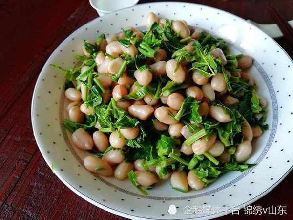 4、花椒芽攥幹多餘的水分,和花生米放在一起,調好的料汁倒入花椒葉花生上,充分攪拌即可。