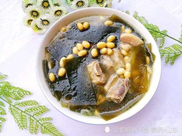 1、海帶清洗幾遍清洗幹凈,瀝幹水分切成小塊。黃豆提前一個晚上浸泡,泡發後清洗幹凈瀝幹水分。