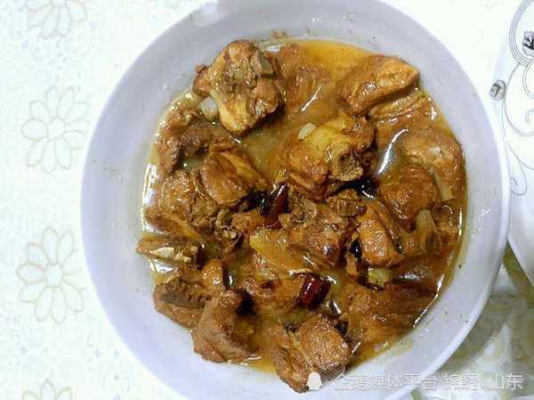 3. 排骨用高壓鍋壓好後,將排骨和湯都倒入鐵鍋中。鍋中加入鹽,醬油,再加入蔥薑蒜,蓋上蓋中火燉30分鐘左右。最後大火收汁即可享用。