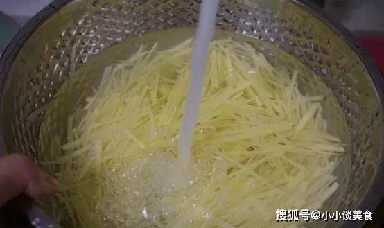 首先,將土豆去皮,切成細條。這裡要註意,土豆去皮後不要急著下鍋煮。應該先用冷水泡一下,這樣土豆才不會氧化,這樣土豆才不會變黑,同時也會讓土豆吃起來更好吃。但在水中浸泡的時間不宜過長,否則土豆中的水溶性維生素會溶入水中,營養價值會流失。