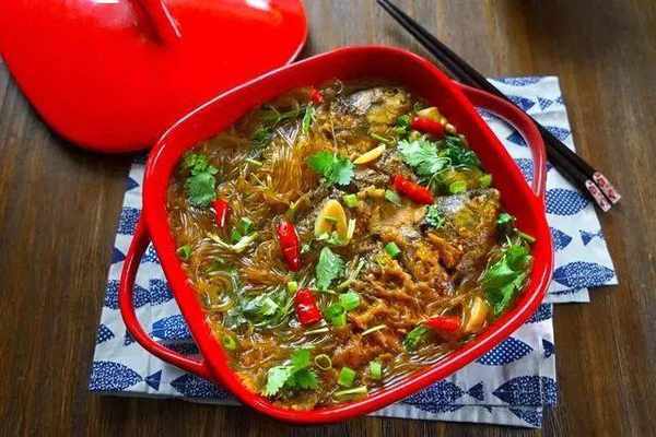 10、將魚先裝入盤中,再盛入粉絲和魚湯汁,即可開動筷子品嘗這道美味瞭哦!