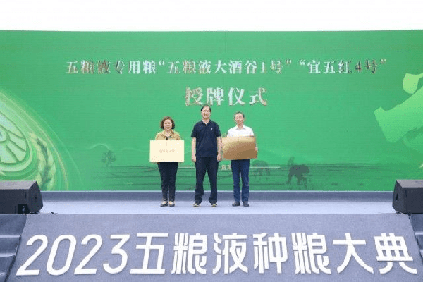在活動期間,除瞭組織進行秧苗紮根土地活動,還特意舉行瞭五糧液專用糧“五糧大酒谷1號”糯稻種和“宜五紅4號”糯紅高粱種命名授牌儀式。“五糧大酒谷1號”是由本地大酒谷改良而來,在保持其優質釀酒特性的同時,降低株高,改善抗病抗倒伏農藝性狀。“宜五紅4號”是經系統選育而成的釀酒型優質高粱品種,不僅出酒率高,而且用原料釀出來的白酒酒質比較好。
