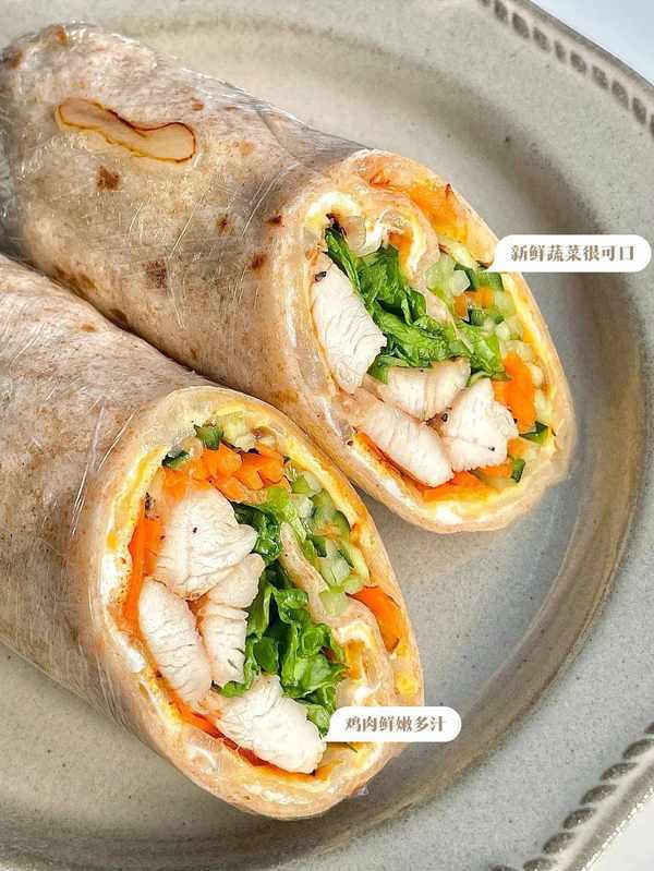 原標題:早餐做蔬菜多多雞肉全麥卷餅非常好吃