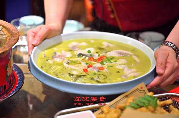 現在講究菜品的融合,也有一些新意的產品,比如說能喝湯的酸湯魚,酸菜不是東北的酸菜,來自四川的酸菜加上滑嫩的魚片,湯底真是好喝!