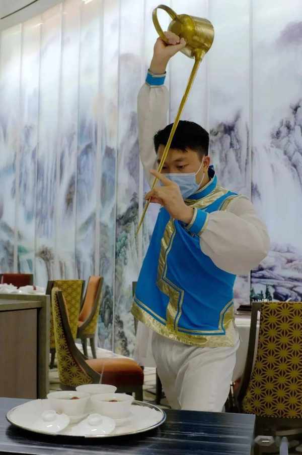 落座先奉茶,店裡特意請瞭四川的師傅表演功夫茶,小夥子出手不凡,全套動作行雲流水,叫人秒回成都鶴鳴茶館。