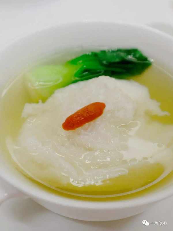 芙蓉燕液雞豆花,是一道功力深厚的老菜——三年的老母雞,雞胸肉反復捶打,令纖維盡碎,加入雞蛋清,做成綿密柔軟的雞豆花,其餘的雞拿來熬湯,隻稍加火腿提味,赤肉一律不沾,還要掃三遍湯,得來清鮮的精華,將豆花沖進雞湯,小火煨制,自然成型,輕如雲朵,雞味盡收。