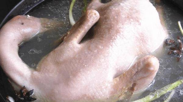 1、先將白條鴨的肚皮清洗幹凈,放入清洗液中浸泡2小時,然後將鴨撈出瀝幹水分備用。