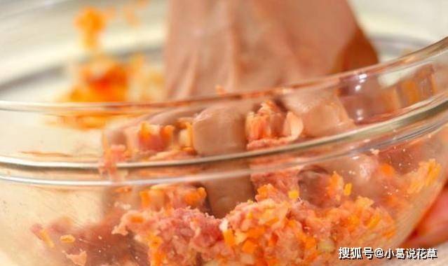 2、然後做丸子,蔥切細,胡蘿卜切碎,加入豬肉碎、雞蛋、淀粉、鹽和胡椒粉拌勻。