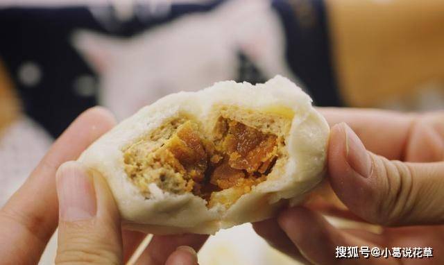這饅頭裡頭夾著香甜多汁的鮮肉,帶著咸蛋黃的香味,讓人忍不住吃一口,太好吃瞭!您可能也想嘗試一下。