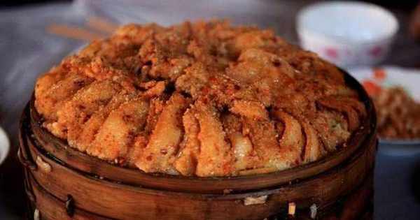 然後把米粉倒入醃好的肉裡,用手按摩,讓每一塊肉都沾滿米粉。肉醃好後,鍋裡會有很多湯汁。這湯是米粉入味的關鍵,千萬別倒出來。一定要堅持肉和米粉的粗細。太幹,米粉容易與肉分離,吃起來又幹又硬;太稀瞭,味道會變淡,不好吃。肉和米粉混合在一起後,準備蒸肉碗。你可以在碗底鋪上一些蔬菜,然後把蒸好的肉倒在上面。蔬菜可以吸收肉中的脂肪,減少肥膩的味道。