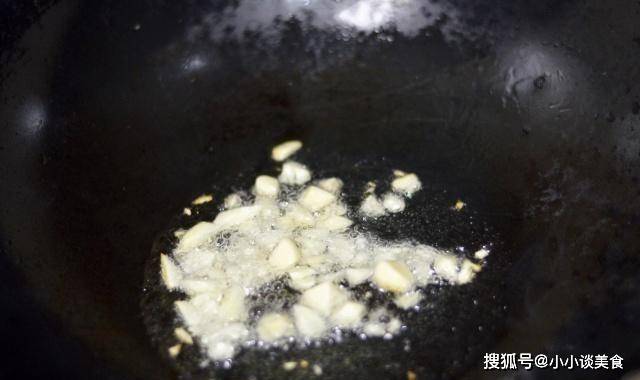 2、鍋中加入適量的食用油,然後放入切碎的蒜片,放入爆香即可,不要太焦即可;