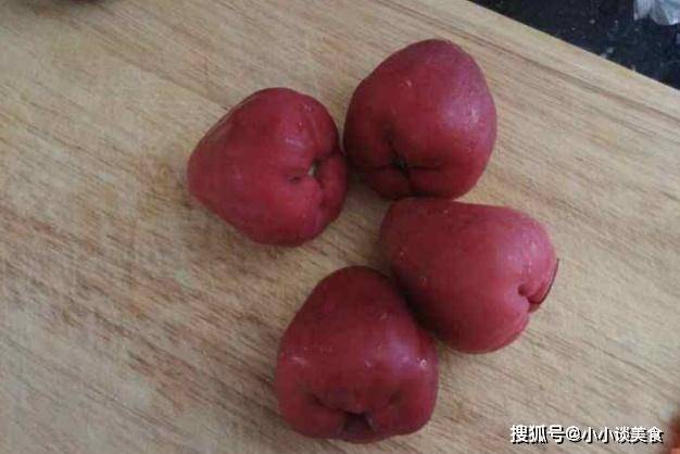 第一步:用清水沖洗您購買的蓮霧。清洗蓮霧時,可以先取出少許食鹽,然後用食鹽擦洗蓮霧表皮,這樣蓮霧表面的雜質就可以擦洗幹凈。過瞭一會兒,蓮霧不用剝瞭。蓮霧洗凈後,用刀切成塊。