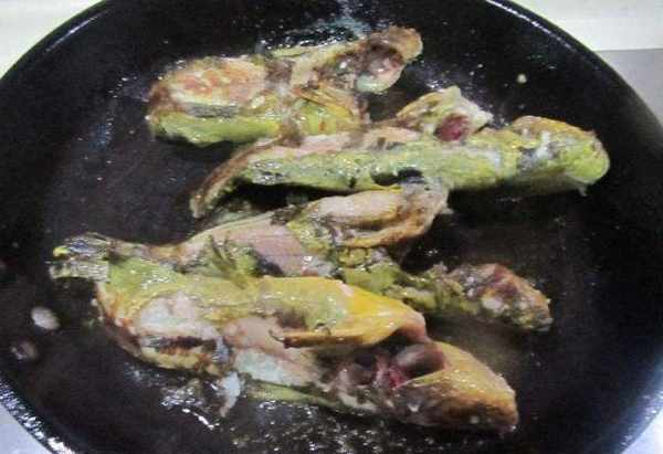 鍋中加入適量食用油。油熱後放入一個雞蛋,煎成荷包蛋撈出待用。加入適量的鹽或用生薑抹平鍋底再加入適量的食用油。油溫60%以上時,將黃鴨放入內炸。