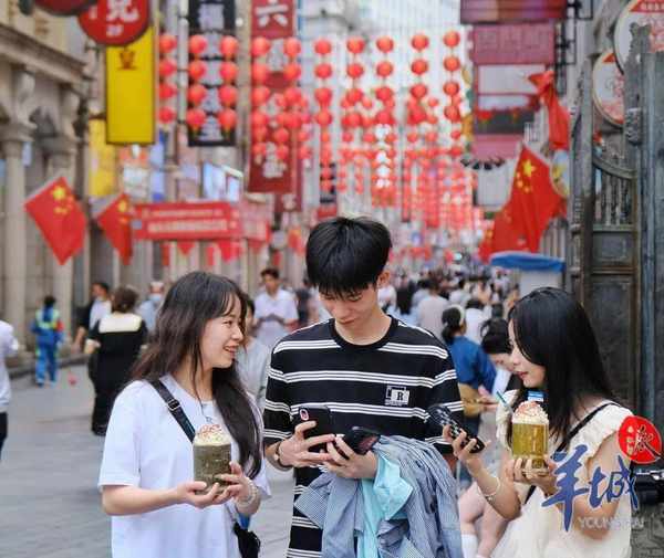 沿著上下九步行街數百米路程而行,廣州豬腳薑、魚蛋、牛肉丸、湛江生蠔、潮汕蠔仔烙……地道粵式美食齊聚。內蒙古烤肉大串、老北京手工糖、西安涼皮等也在巡展設置的美食區助興。有市民已經等不及,提前到美食區打卡,品嘗各地小吃。