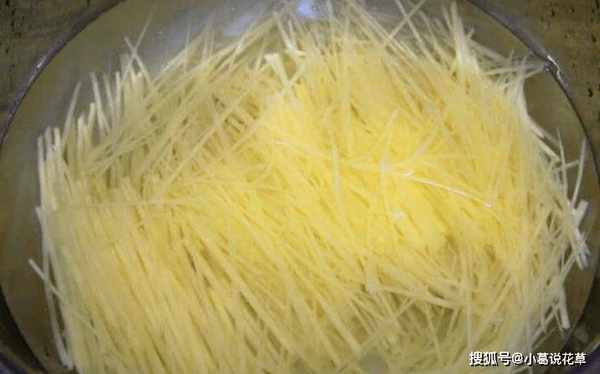 先將土豆去皮,洗凈,切成薄片,再切成粗細一樣的細絲。在傢做飯的人會覺得很難撕,也覺得刀本身的技術不好,不美觀,口感不好,所以經常用工具來搓絲。以這種方式生產的長絲非常細且粗細均勻。不過經過驗證發現,自己切的炸土豆片比較入味,比較酥脆,所以大傢平時可以多多練習。切好後,將淀粉洗凈,用清水浸泡。