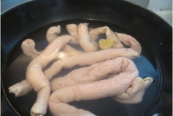 第一步,將買回來的豬大腸清洗幹凈,翻過來,刮去腸內壁的油脂,加入面粉和醋,然後用手洗凈。然後鍋裡加水,加入薑片和食鹽,用大火把水燒開,然後把整個豬大腸放進鍋裡焯一下。