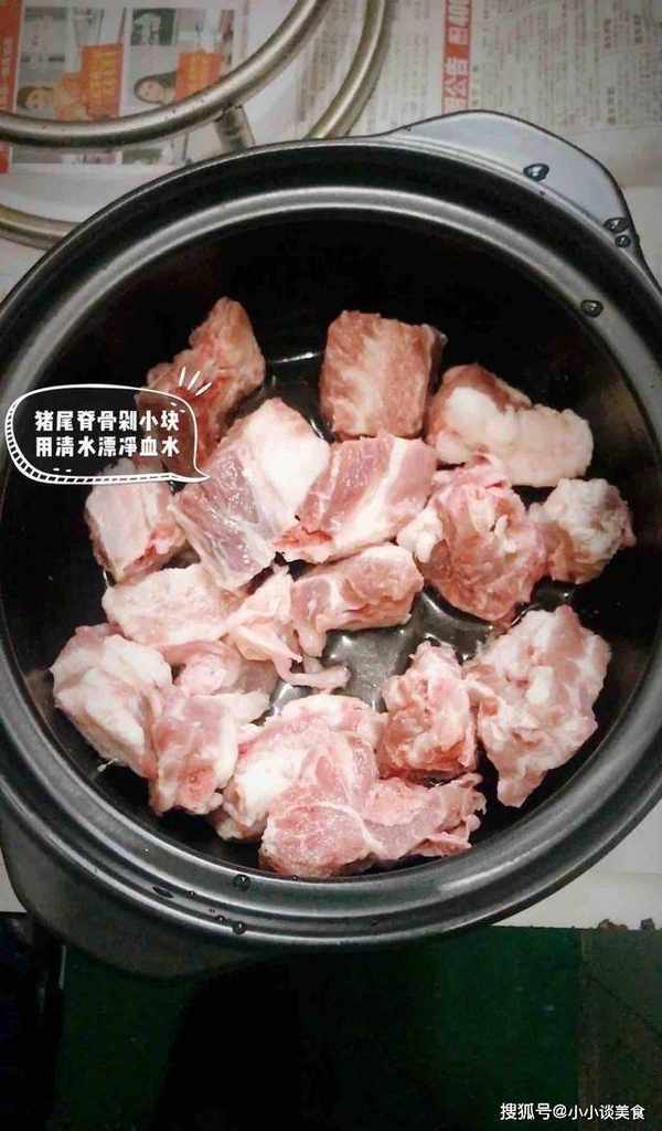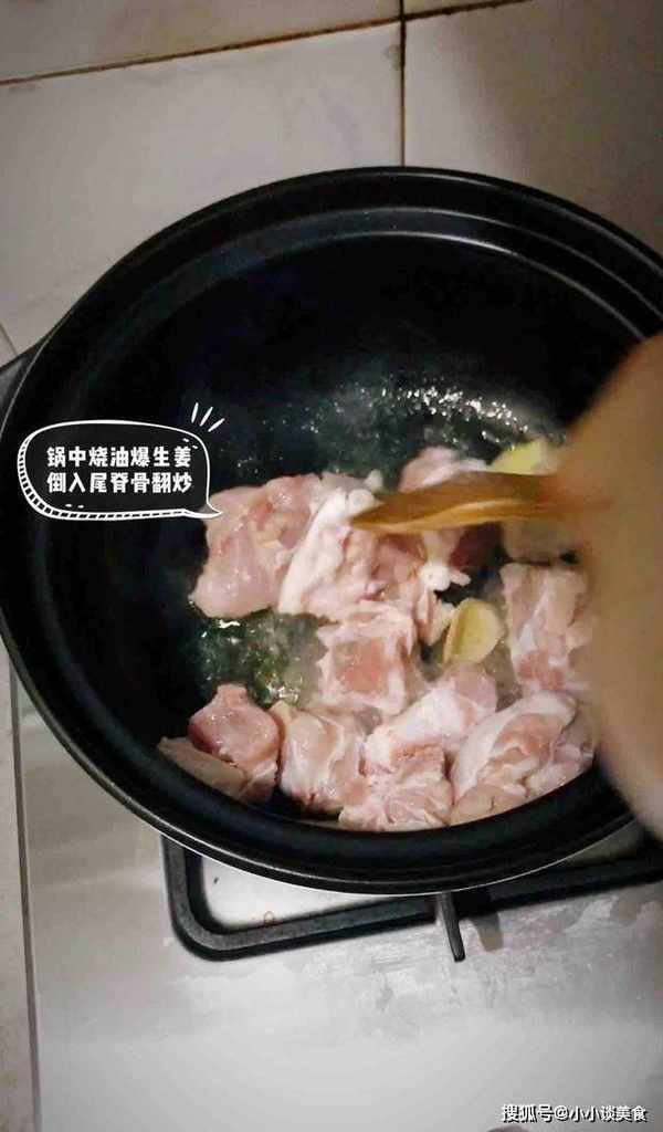 1.豬尾脊骨剁小塊,洗去血水,薑洗凈切片待用。