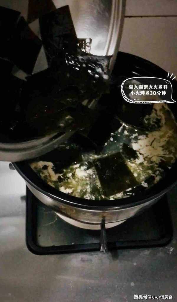 9.將海帶倒入鍋中燒開,轉小火煮30分鐘。
