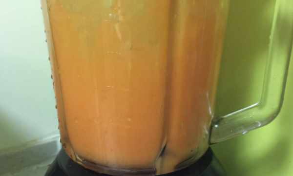 2、把胡蘿卜段放進料理機裡,然後加入少量的水,用料理機把胡蘿卜段打成泥。